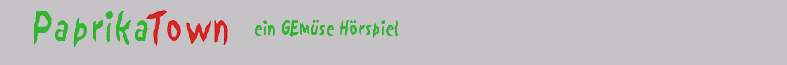 Hallo! Hier findest Du alles Wissenswerte über das Hörspiel "Paprika-Town"! Es ist zwei Stunden lang und handelt von Gemüse. Gemacht wurde es für kleine und große Kinder ab sechs Jahren! Es gibt viel Musik, Geräusche und auch eine Menge Dramatik... ![]() ![]() Die öffentliche Welt-Premiere war am 10.12.06 Bild Letzter öffentlicher Präsentations-Termin war am: 18.10.2007 19 Uhr LVR-Cafe' Rheinische Kliniken Düsseldorf Bergische Landstr. 2 40629 Düsseldorf Die Doppel-CD kostet 15€ und lässt sich hier bestellen! >>Gästebuch<< (Sorry, das Gästebuch musste leider entfernt werden wegen zu hohem Spam-Aufkommen) |